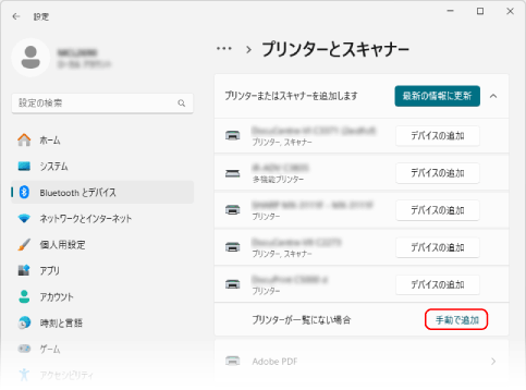 [プリンターまたはスキャナーを追加します]の[デバイスの追加]をクリックする