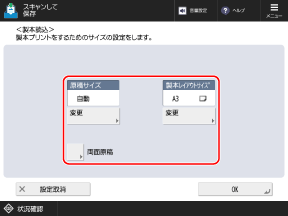 [原稿サイズ]の[変更]を押し、原稿サイズを選択して、[OK]を押します。