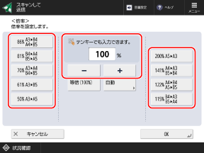 ※スキャンデータをユーザーボックスに保存する場合は、25 % ~ 400 %まで設定できます。