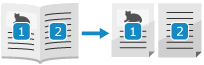 本や雑誌のような見開き原稿をスキャンする場合に、左右のページを別々のページに分割してスキャンするように設定します。