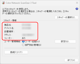[スキャナー情報]に本機が表示されていることを確認する