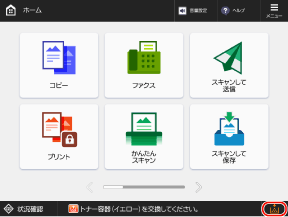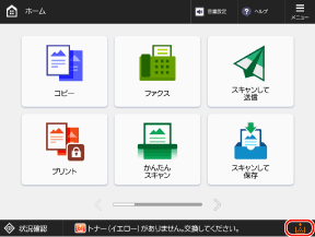 状況確認]を押し、[消耗品/その他]で用紙設定を確認します