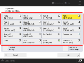 Pressione [Detailed Settings] e selecione o tipo de papel na lista exibida.