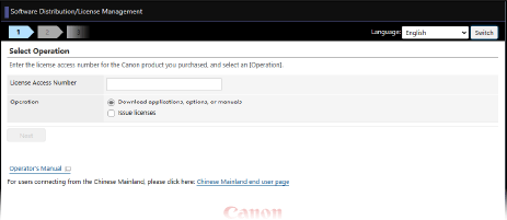 * Se o número de acesso de licença não for fornecido no pacote do aplicativo MEAP, você não precisa obter o arquivo de licença. Ele será fornecido pelo fornecedor do aplicativo. Para obter mais informações, consulte o manual de cada aplicativo.