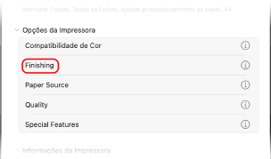 Na guia [Acabamento], clique em [Configurações avançadas].