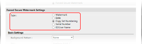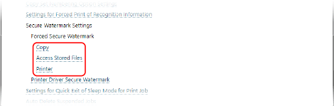 Em [Forced Secure Watermark], clique na função à qual aplicar a marca d’água segura.