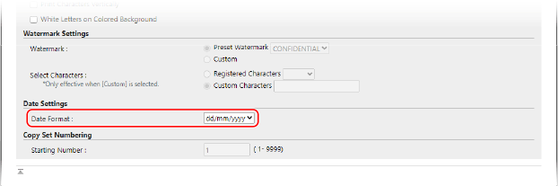 [Register Characters for Page Numbering/Watermark]Ao incorporar a data da impressão ou cópia
