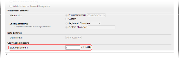 Você pode incorporar os números do jogo de cópias (para indicar a ordem dos jogos de cópias) ao imprimir ou copiar. Eles podem ser usados como números de controle para cada jogo.