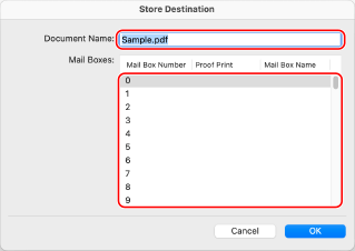 Em [Job Processing], selecione [Store] e clique em [OK].