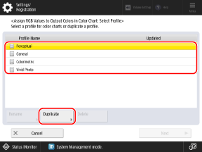 Select and duplicate one of the previously registered profiles in the machine, and create a profile to register the colors you want to reproduce.