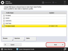 Select the created profile, and press [Next].