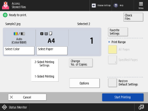 After checking or changing the print settings, press [Start Printing] to perform printing.
