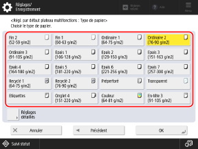 Appuyez sur [Réglages détaillés], et sélectionnez le type de papier dans la liste affichée.