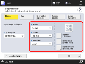 Écran de copieL'écran [Filigrane sécurisé] s'affiche.