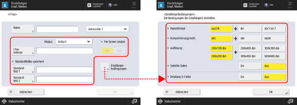 Richten Sie die Zielbedingungen entsprechend den Spezifikationen des Empfängersystems ein. Wenn Sie Bedingungen einrichten, die vom Empfängersystem nicht unterstützt werden, kann es zu einem Übertragungsfehler kommen.