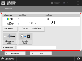 * Um die Rückseite mit den gleichen Einstellungen wie die Vorderseite zu konfigurieren, stellen Sie zunächst die Vorderseite ein und wählen dann [Wie Vorderseite].