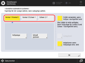 2 verwenden, um den Bereich für die Anwendung der Schnelljustage festzulegen. Standardmäßig ist [Nach Papier typgruppe] eingestellt, und Sie können Kalibrierungen für jeden in Schritt