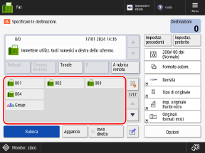 È possibile specificare le destinazioni registrate nella rubrica richiamando la rubrica dalla schermata di scansione (Scansione e invio) o fax.