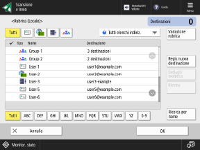 Quando si richiama la rubrica dalla schermata di scansione o fax, viene visualizzata la schermata pertinente riportata di seguito.