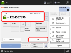 Verificare le informazioni sulla destinazione e premere [OK].