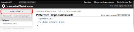 Sulla pagina portale della IU remota fare clic su [Impostazioni/Registrazione].