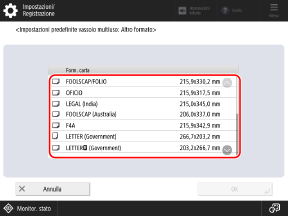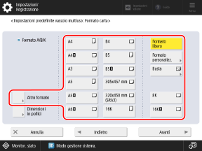 Per i formati carta visualizzati quando si preme [Altro formato], fare riferimento a quanto segue: