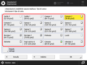 Invece di fissare il tipo e il formato carta, si consiglia di registrare le informazioni relative alla carta (tipo e formato) come Carta preferita in modo da poterle richiamare dalla schermata delle impostazioni carta.