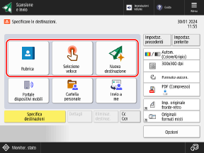 È possibile modificare la destinazione e le impostazioni di scansione richiamate prima dell'invio.