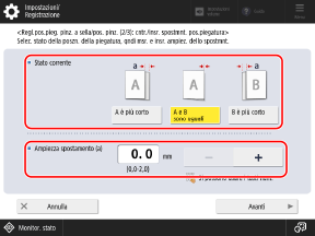 Selezionare lo stato corrente della posizione di piegatura e impostare la larghezza dello spostamento.