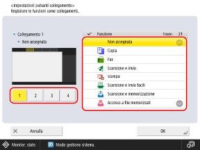 Schermata [Home]Viene visualizzata la schermata [Impostazioni pulsanti collegamento a funzioni].