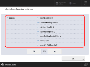 È possibile verificare i nomi delle apparecchiature opzionali collegate alla macchina e le funzioni opzionali.