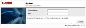 Quando si accede come amministratore, inserire l'ID e il PIN del gestore del sistema, quindi fare clic su [Accedi (Amministratore)] per accedere.