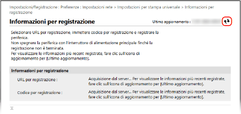 Fare clic sul link visualizzato accanto a [URL per registrazione] e registrare la macchina in base alle istruzioni a schermo.