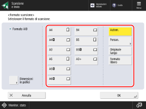 Premere [Autom.] e selezionare il formato di stampa dei dati (formato carta dei dati scansionati).