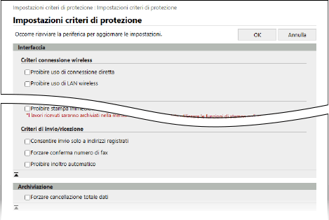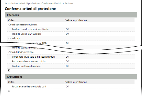 Dal momento che questa funzione non è disponibile sulla macchina, non viene applicata ai criteri di sicurezza.