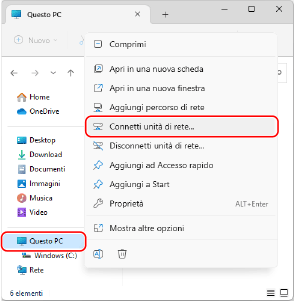 Fare clic con il tasto destro su [Questo PC], quindi fare clic su [Connessione unità di rete].