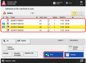 È possibile selezionare e inviare contemporaneamente fino a 32 file nella stessa mailbox.