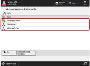 Premere [Controllo inform. memoria], selezionare la destinazione di connessione e premere [Dettagli] per verificare il protocollo e il percorso della destinazione di connessione.