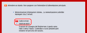 Prima di contattare un rappresentante dell'assistenza, riavviare la macchina per vedere se il messaggio di errore scompare. Se il messaggio di errore ricompare, contattare un rappresentante dell'assistenza e segnalare i sintomi.
