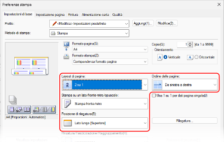 Viene visualizzata la schermata [Preferenze stampa] del driver della stampante.