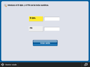 Cuando la gestión de ID de departamentos esté activada, será necesario introducir el ID de departamento y el PIN para iniciar sesión al utilizar el panel de control o la IU remota.