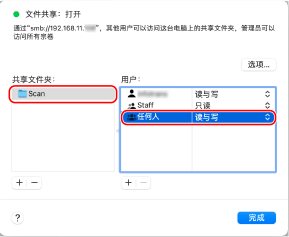 对于 [共享文件夹],选择所创建的文件夹。