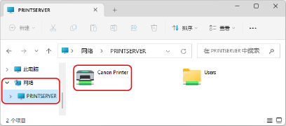 在 [网络] 中,选择要显示共享打印机的打印服务器。