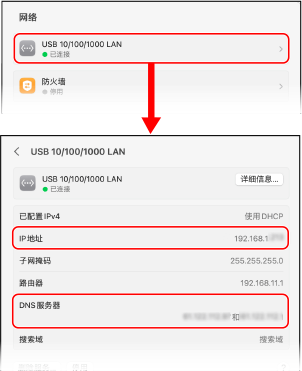 单击 [详细设置],然后检查显示在屏幕上的 IP 地址。