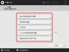 可以为每个登录用户更改与屏幕显示和可操作性相关的设置(个人设置)。这些设置仅在对它们进行自定义的用户登录时有效,而不会影响其他用户的设置。