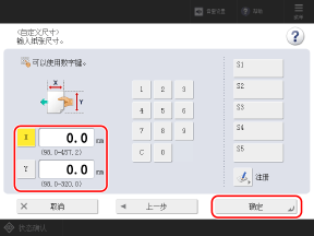 注册常用的非标准尺寸后,可通过按 [S1] 至 [S5] 来调用这些设置。
