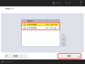 选择装入的长条形纸张尺寸,然后按下 [确定]。