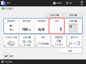 在控制面板上,按下 [主页] 屏幕中的 [复印]。