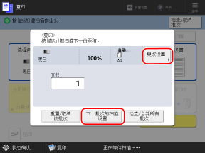 按下 [下一批次的扫描设置],然后配置第二个原稿的复印设置。
