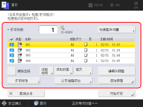 随即显示 [合并作业批次:检查/打印批次] 屏幕。